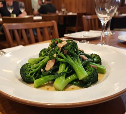 Delikatne łodygi grillowane lub blanszowane. Subtelna gorczycowość, która dobrze kontrastuje z tłustością ribeye'a.